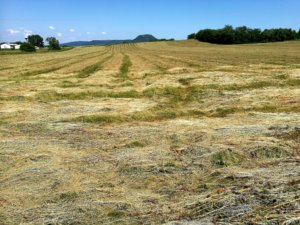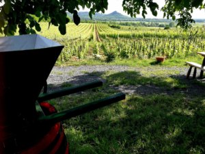 Meg kell dolgozni minden pozitív élményért, ezért hőségriadó ide, rekkenő hőség oda Tapolca és Hegymagas között gyalog közelítettük meg az objektumot. Barátnőim a Kék túra teljesítését viszik véghez, így megnézték, hogy a szakasz hogyan esik a települések között. Ne firtassuk, hogy természetesen benézték az utat. A legnagyobb melegben indultunk, fél kettőkor. Tapolcáról a kék jel egy darabig az olvadó aszfalton futott. Mondanom sem kell, a mellettünk elhaladó nem kisszámú autóból megdöbbent tekintetek mértek végig minket. A csajok GPS-en követték a nyomvonalat, amikor is jött az utasítás a fasornál bekanyarodunk jobbra. Gondoltam, milyen remek, végre árnyék. Ez kb. két percig tartott, ott ugyanis vége lett a földútnak és előttünk egy végeláthatatlan tarló következett a Szent György-hegy lábánál. Árnyék, az történelem. A tarlón, a levágott, csúszós füvön 32 fokban egyre távolabbinak tűnt a célállomás. Az út amúgy nagyjából 8 km, az útvonaltervező szerint 1 óra 40 perc. Én egy kényelmes túrára készültem, így szandálban nyomtam. Nyitott cipőben garantáltan mondhatom nem a legkiválóbb a kemény tarlón bandukolni. Minden negatív felhangot félretéve, csodás a táj. A tarlón, valószínűleg egy őz sziesztáját zavartuk meg, vadul menekült szegény. Olyan kecsesen szelte a tarlót, hogy szinte csodáltam. A tarló után rákanyarodtunk a szőlők közötti dűlő útra. A szőlőkből kilépve mintegy fél óra múlva ismét az aszfaltot koptattuk. A párolgó aszfalton gyalogoltunk tovább, a bazaltorgonák alatt. Pazar látvány. Elmentünk Raposka mellett, majd Hegymagas következett. Természetes méregtelenítés részesei voltunk. Hegymagas nagyon békés hangulatú falu a hegy lábánál, teljesen rendezett benyomást keltett. A falu végén balra 10%-os emelkedőn kaptattunk fel a Szászi Birtokhoz. A hegyoldal pincészetei remekül ki vannak táblázva. Könnyen megtaláltuk az objektumot.