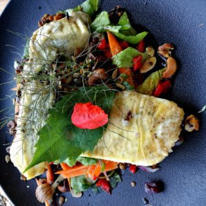 A csajok felmentek a bazaltorgonákhoz, ahová én már nem csatlakoztam. Maradtam ebben a nyugalmi buborékban. Kortyolgattam a hosszúlépést és beszélgettem kicsit pincérrel. Kérdezgettem a helyről, a filozófiájukról. Az étterem nemcsak varázslatos helyen van, hanem ötvözi mindazt, amit én fontosnak tartok. A birtok, a borászat családi vállalkozás. Szászi Endre borászatuk mellett nyitotta meg az éttermet, a Viridáriumot. A konyha alappillére a frissesség, szezonalitás és a helyi termelők preferálása. Mindehhez felkészült pincérek, vagy a séf ajánlja a megfelelő borokat. Remek hely, remek kulináris kombó.